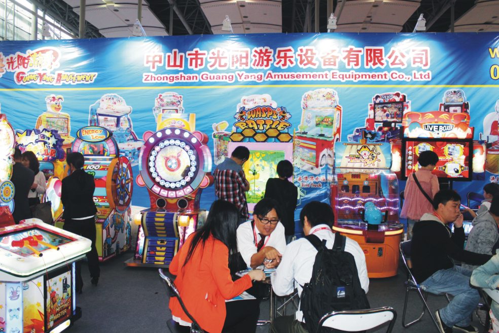 Zhongshan Guangyang Amusement Equipment Co.,Ltd took more than 20 kinds of products to the show . Including our newest products: Lucky motor, piano chuckle, crazy shoot,firm tour and some best sale products :fire truck ,funny ball ,wasps battles ,attack pirate and so on... There are many customers were attracted by our booth,they came to play our machines and ask for the information about our machines. They not only the specialty buyers from all over the China,but also the international buyers from Southeast Asia,Middle east ,Europe and North America.