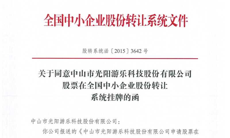 Stock Name: “ GuangYang Amusement” Ticker Symbol: 832956