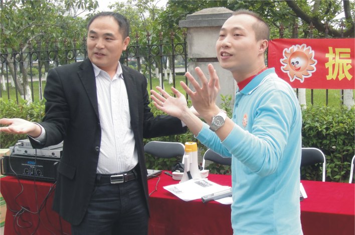 圖2:主持人在演示比賽的游戲規(guī)則