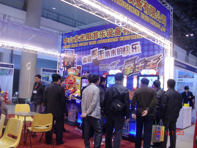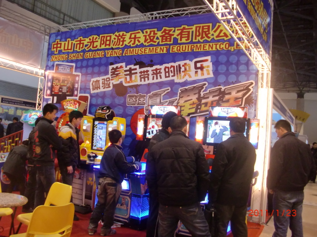 我們公司此次在展會上展出了“真人拳擊王”、“大錘手”、“扳手腕”等多款公司暢銷和最新的機臺。其中“大錘手”、“歡樂牧場(喜洋洋轉馬)”成為大家的最愛,咨詢和準備訂購的客戶非常多,“真人拳擊王”以其新穎的設計和視頻效果獲得了大家的諸多好評!本次展會國內客戶中北方客戶較多,我們在展會上不僅接待了許多來自全國各地的老客戶,還結交了眾多對我們產品感興趣的國內外新朋友,大家在展會上彼此相談甚歡。三天展會下來基本實現(xiàn)了我們的預期目標,我們將在接下來的日子里繼續(xù)努力為大家提供更優(yōu)質的產品和更好的服務!