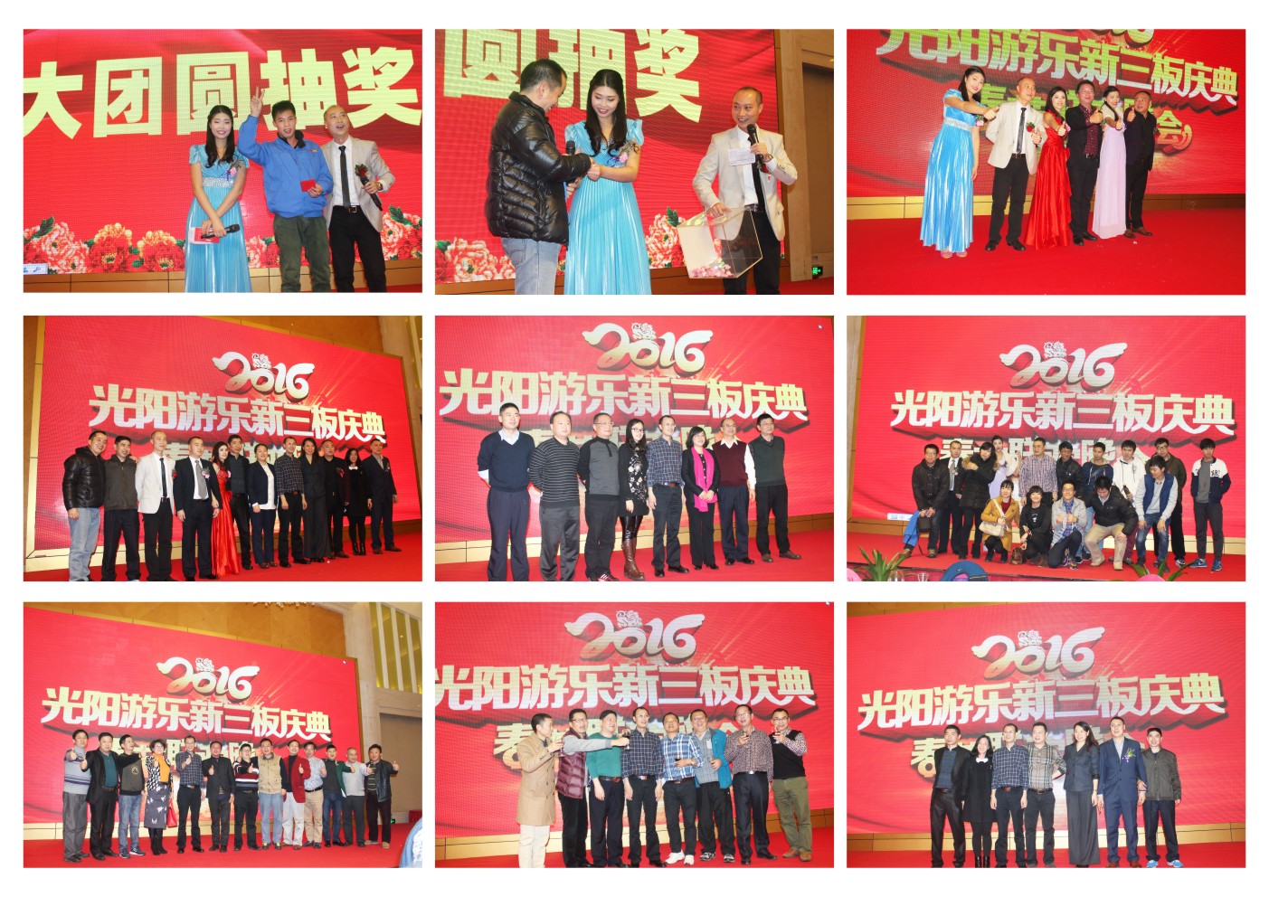 隨后,隆重的進行了新三板授獎儀式,分別是員工們持股代表、股東代表、三家中介機構代表上臺接受證書,并有董事長獻上獎杯及鮮花,合影留念。接下來的聯(lián)歡會上,節(jié)目五彩繽紛,精彩紛呈,不斷掀起年會的高潮。表彰了2015年度優(yōu)秀部門/團隊/主管/員工及等表現(xiàn)突出,為公司做出貢獻的員工們,并號召全體員工向他們學習,學習他們在各自崗位上盡職盡責、任勞任怨,特別是“舍小我顧大局”的團隊精神!不屈不撓的拼搏精神!聯(lián)歡會不僅給大家?guī)砹藲g聲笑語,同時也讓同事之間彼此的心更加貼近。最后的大團圓抽獎活動更是讓整場晚會高潮迭起,呈現(xiàn)出光陽這個大家庭的歡樂和諧與激情奮進。晚會結束后,嘉賓們同事們紛紛合影留念,晚會在依依不舍中精彩閉幕。