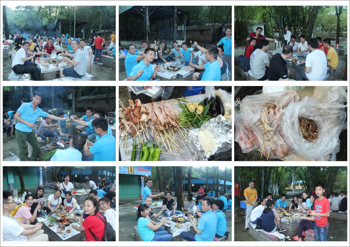 臨近5點(diǎn),我們依依不舍的告別美景準(zhǔn)時(shí)返回集合地點(diǎn),進(jìn)行活動(dòng)下一項(xiàng),逍遙谷燒烤場,大家分工明確,洗菜、生火、串制食物,配合默契,忙得不亦樂乎!趁著旺盛的炭火,燒烤正式拉開了帷幕。大家展示了不同的燒烤方法和技藝。歡聲笑語隨著縷縷炊煙縈繞在空中,吃著自己親手烤出的各種食品,聊著自己在工作和生活中遇到的各種趣事,其樂融融!餐后我們又幸福的圍聚一起,拍下了美麗的全家福,度過一個(gè)愉快而有意義的周末,這次活動(dòng)讓大家在緊張的工作之后,能享受一份放松的心情,在大自然中呼吸了清新空氣,增進(jìn)了工作伙伴之間的感情,重要的是增強(qiáng)了團(tuán)隊(duì)的凝聚力,展現(xiàn)了友愛互助的團(tuán)隊(duì)精神,收獲了健康與快樂,又為我們的工作生活增色添彩。